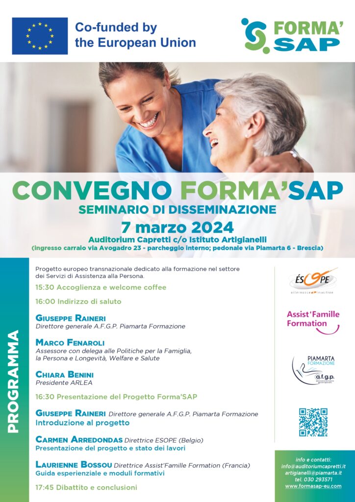 Form’Sap est le projet né de la collaboration de trois organismes (Esope, Assist’Famille Formation et A.F.G.P.) pour l’assistance à la personne (SAP), en particulier l’assistance à domicile.
